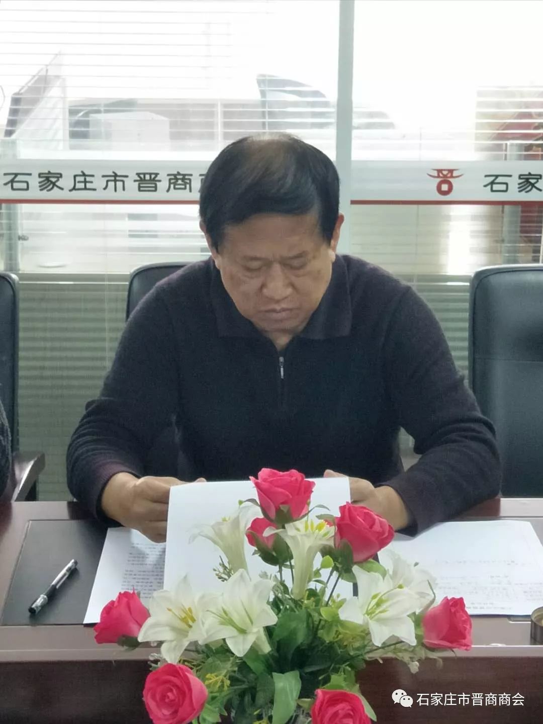 太陽(yáng)露出久違的笑臉,人們沉浸在十九大勝利閉幕的喜悅之中。時(shí)值周六,石家莊市晉商商會(huì)十九大報(bào)告學(xué)習(xí)暨二〇一七年第十次會(huì)長(zhǎng)辦公會(huì)如期舉行。到會(huì)的會(huì)長(zhǎng)準(zhǔn)時(shí)參會(huì)簽到,出差在外地未能按時(shí)到會(huì)的會(huì)長(zhǎng),將要按商會(huì)嚴(yán)肅會(huì)議紀(jì)律規(guī)定交上樂(lè)捐金。